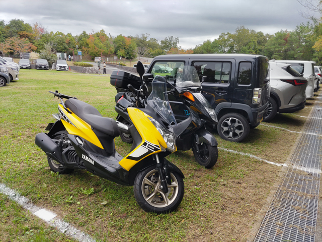 有馬富士公園はイベントでもあるのか、第一駐車場は満車、臨時駐車場にバイクを止める。