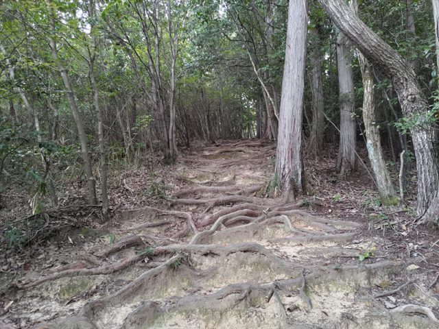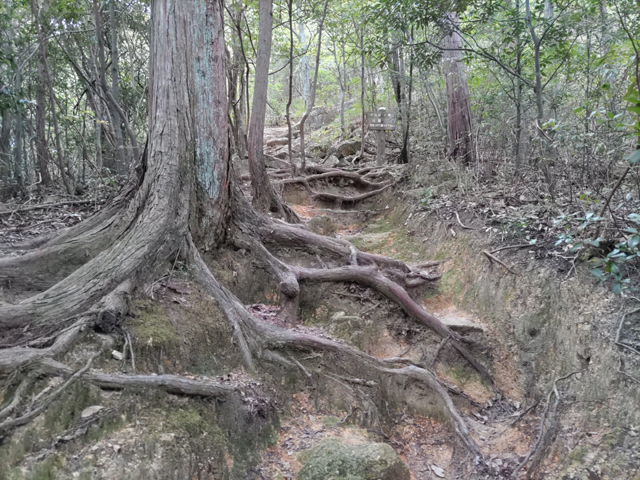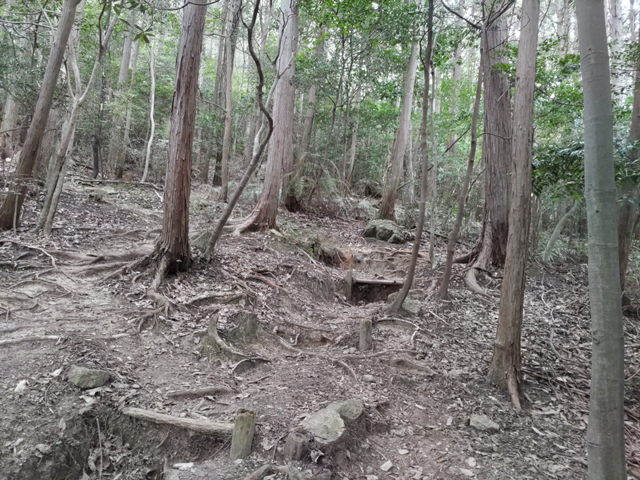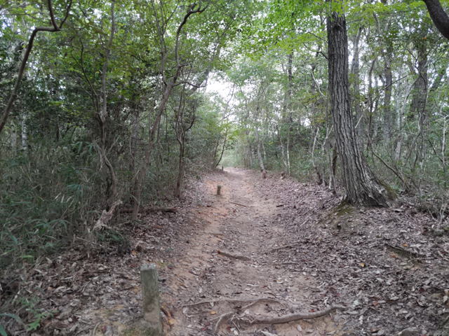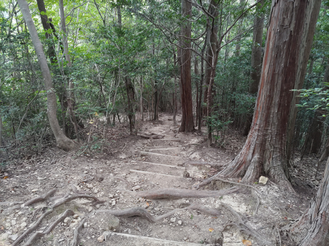 暫く進み看板の無い階段から山中へ、ここからは少し歩き辛くなるが幅は広い。