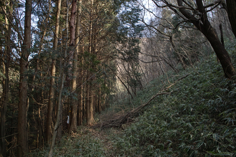 縦走路を少し東へ歩き、盤滝トンネル上から小笠峠へ下る。