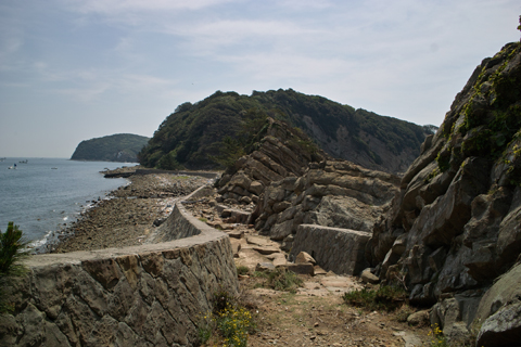野奈浦桟橋に戻って海沿いに歩き灯台を目指す、こちらは多くの人が歩いている。