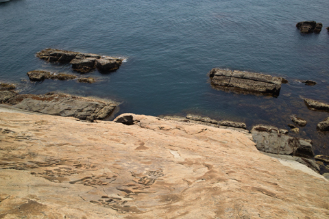 足元の長い岩の段差により意外に通り難い序品窟を通過すると海が広がる。