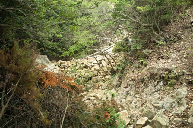 | 橋から惣河谷 | ガードレールを跨いで谷へ |