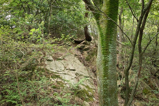 県道に近い方の尾根をゆずり葉台へ下り、樫ヶ峰北尾根取付き付近で一服。