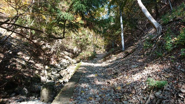 舗装が切れて少し開けた所まで来て一服休憩。ここも紅葉が見頃。