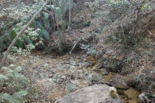最後に急下りして、石積み堰堤まで下りると尾根は終わり。