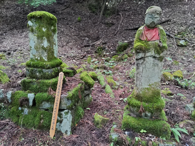 何時の時代か分からないお地蔵様やお墓の様な物が苔に覆われて佇んでいる。