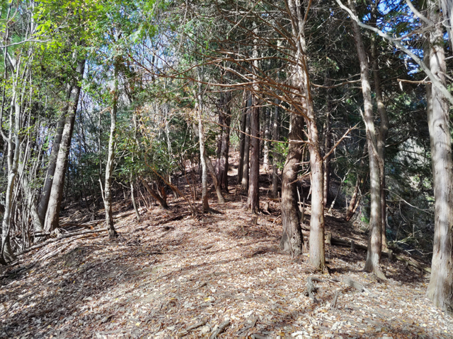 姫髪山と247P辺りにあった姫髪城跡の間の鞍部に上がる。