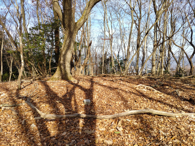 鞍部からは尾根をひたすら登るのみ、傾斜もさほど辛くなく、落ち葉満載で滑り易いだけ。