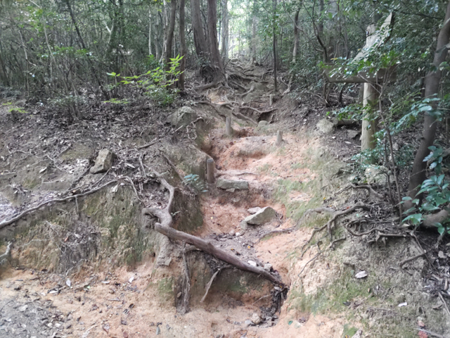 暫く進み看板の無い階段から山中へ、ここからは少し歩き辛くなるが幅は広い。