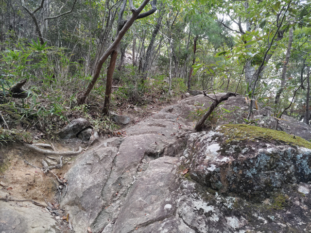 頂上広場から先は全く違う道となり、今までの様に楽には歩けなくなる。