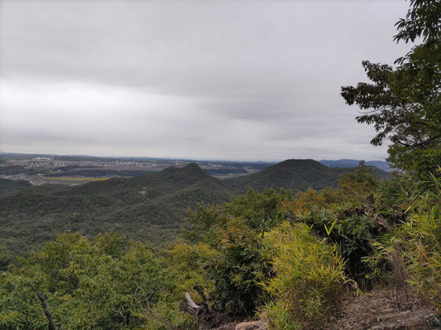 その上の有馬富士山頂(374m)には11時34分到着、直下の景色の良い岩で昼飯休憩。